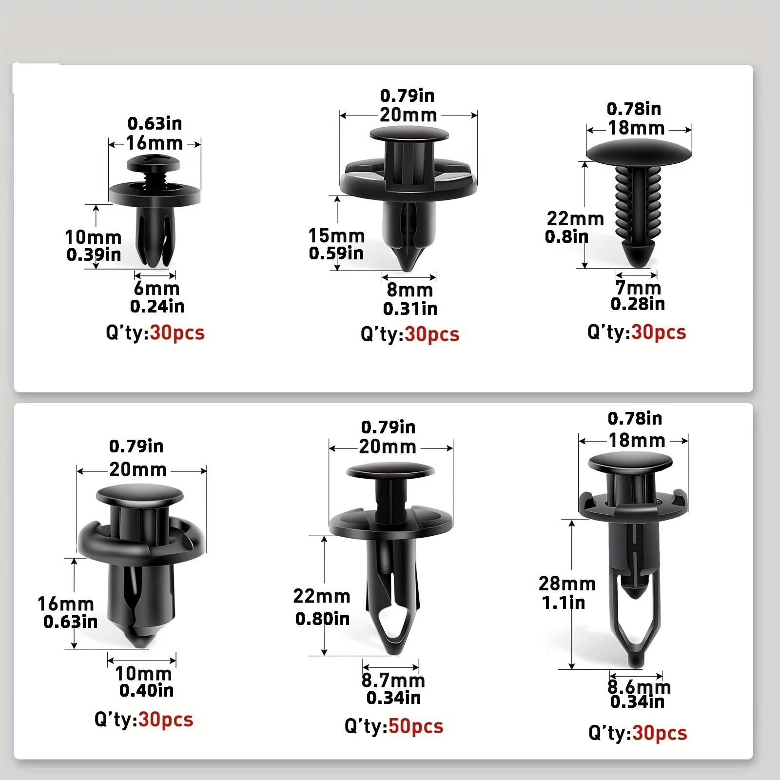 קליפס לתיקון רכב אוניברסלי – סט 6 סוגים מעורבים